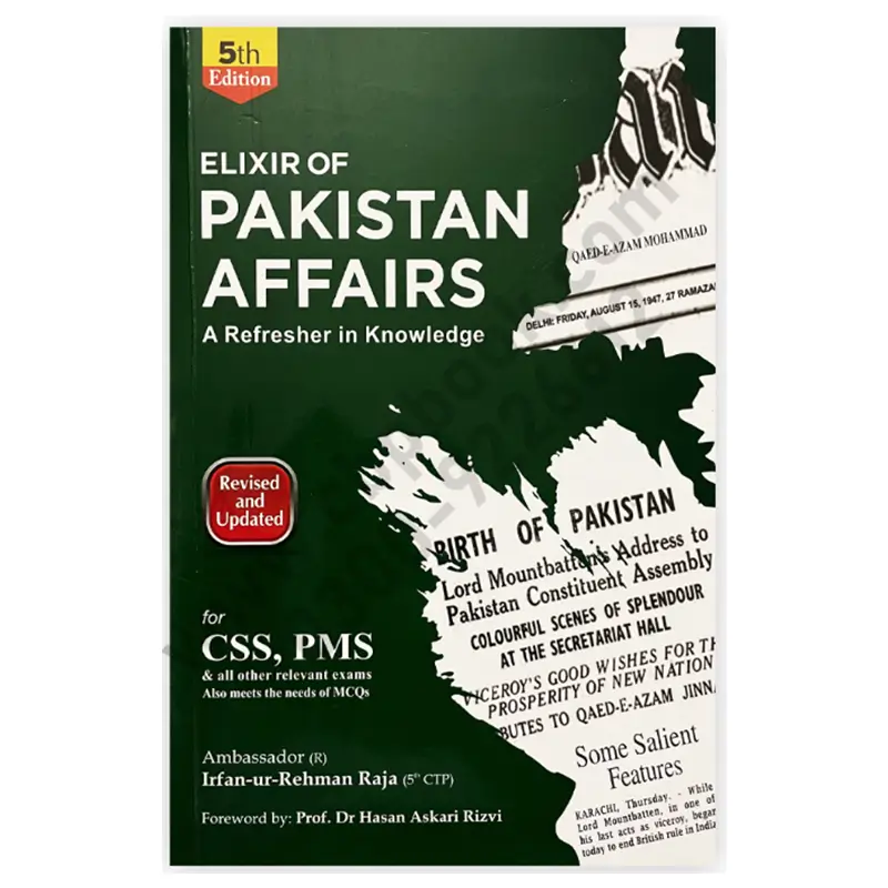 Elixir of Pakistan Affairs By Irfan Ur Rehman Raja JWT 5th Edition, offers a complete refresher in knowledge. It is revised and updated to meet the latest requirements for CSS, PMS, and other competitive exams. This book presents facts, historical events, and analytical insights in a clear, engaging manner.